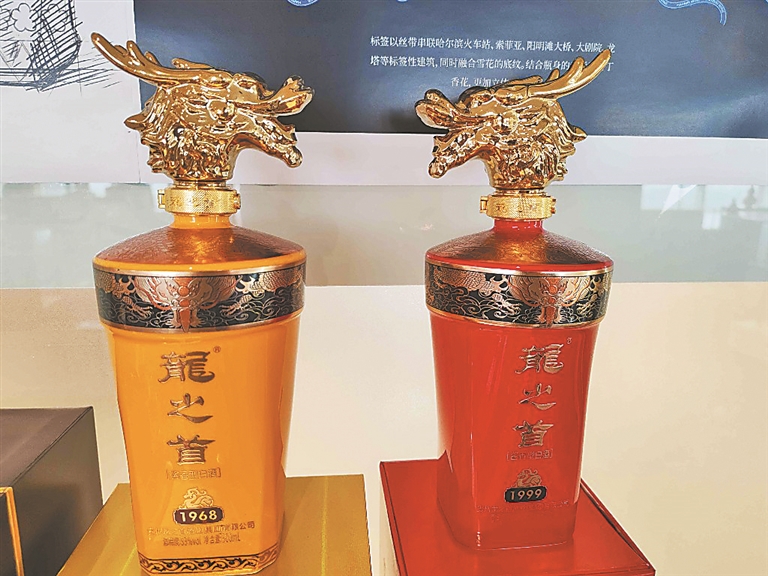 走上产业园20楼,这里有多个本地品牌,其中一款白酒的独特造型和特殊的冰雪元素设计很吸引人。“老白干相信大多数喝酒的人都喝过或听说过,其中,胜洪牌老白干酒就是哈尔滨滨酒酒业集团下属品牌。”滨酒集团负责人韩伟明介绍,滨酒集团成立于2018年3月14日,目前拥有“滨酒”、“胜洪牌”老白干酒、“龙之首”、“鱼米之乡”等诸多品牌,其中龙之首白酒运用了和茅台同样的大曲坤沙工艺“12987”酿造,即指1年的生产周期、2次投料、9次蒸煮、8次发酵、7次取酒。