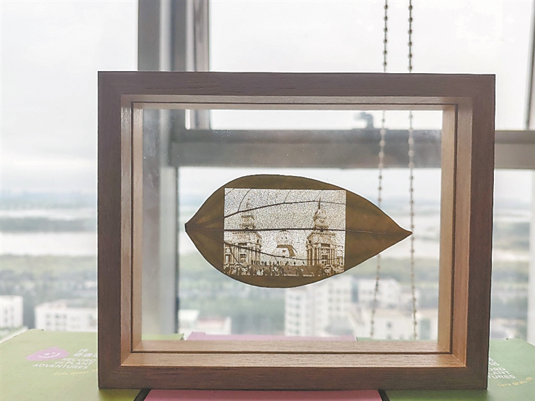 薄薄的叶子上雕刻着栩栩如生的哈尔滨景点,这种叶雕创意令记者颇为惊叹。它们是怎么做成的?宫立明说,“叶雕的雕刻过程极其复杂,一共分4步,分别是树叶的选用、树叶的烘干、画面处理和叶雕刻制。”记者看到,哈尔滨的中央大街、防洪纪念塔、索菲亚、太阳岛、大剧院、道外巴洛克等地标景点都进行了雕刻,在阳光的照射下栩栩如生。