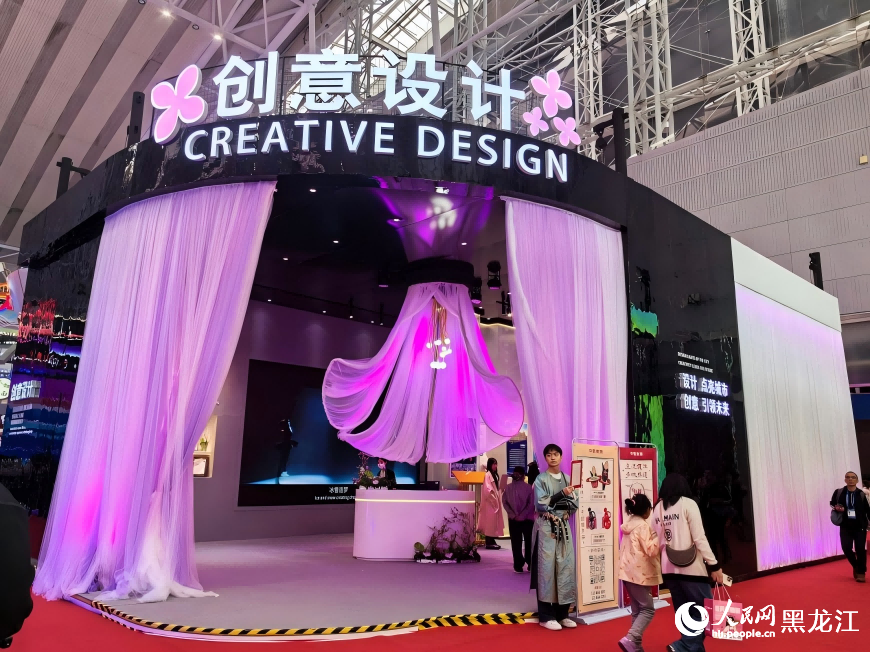 第三十四届哈尔滨国际经济贸易洽谈会(以下简称哈洽会)5月17日至21日在哈尔滨国际会展中心举行,5月18日起进入社会公众开放日。本届哈洽会上,由黑龙江省委宣传部倾力打造的创意设计展区以“雪花遇上丁香花 创意赋能黑龙江”为主题,通过171平方米的沉浸式创意空间,以冰雪水蓝与丁香紫为主色调,全景呈现龙江创意设计产业的蓬勃生机与创新成果。