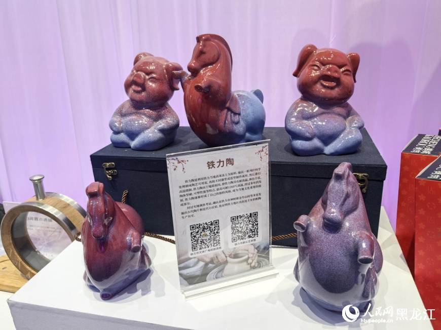 展区内,地市联展解码文化IP密码,黑龙江省13个地市以创意为媒,让非遗技艺、工业遗产与红色文化焕发新生。从齐齐哈尔烤肉吉祥物、佳木斯赫哲神偶、大庆油陶,到伊春铁力陶艺、鸡西石墨烯创意设计产品、黑河北红玛瑙……展区化身文化创新长廊,一件件精美的艺术品令人目不暇接。