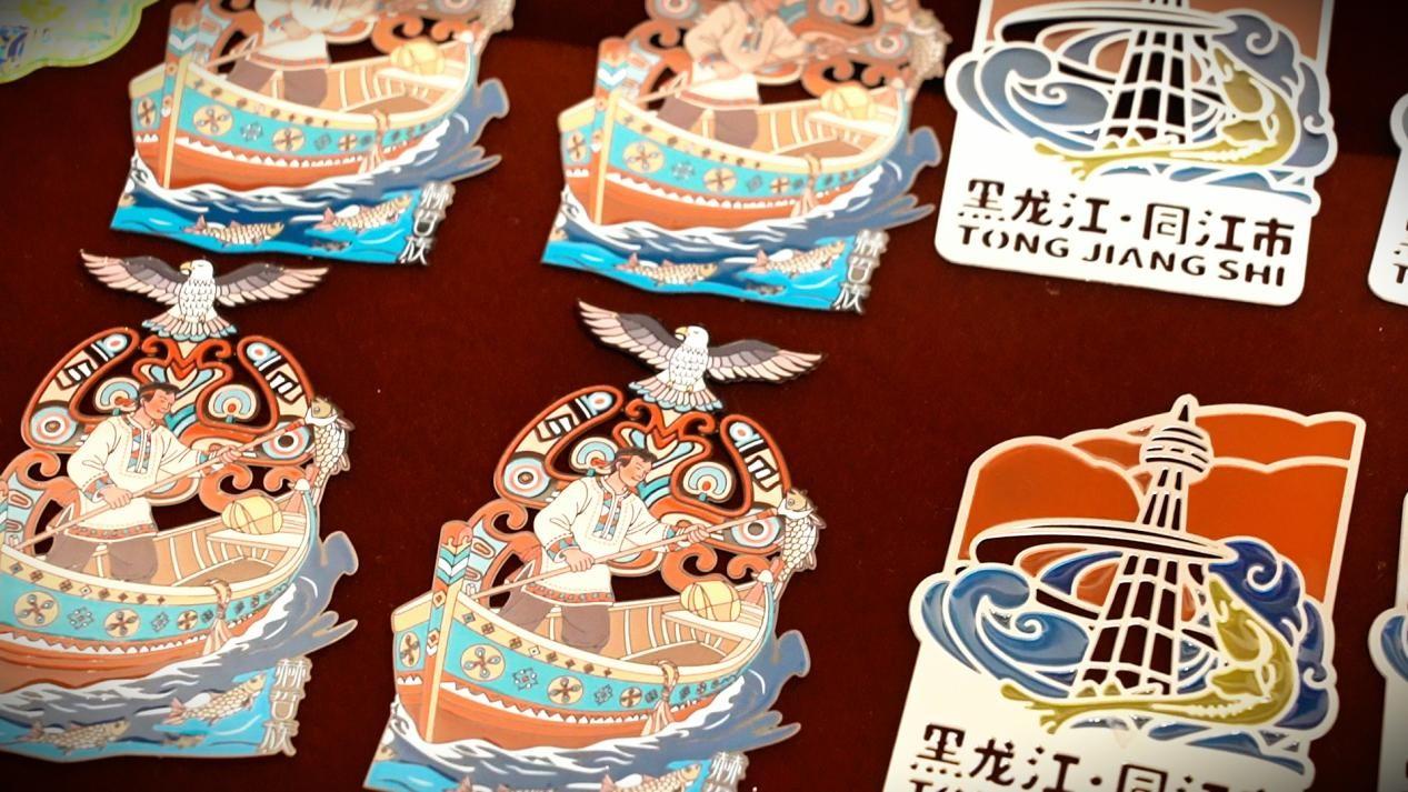 除了鱼皮手工艺品,印着同江特色风景的冰箱贴、书签、水杯等文创产品也成了游客们的“心头好”,在各大景区的文创商店里时常被抢购一空。