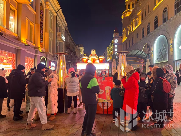 西六道街要潮人民咖啡馆门前的“创意暖炉”率先亮相,跃动的炉火与氤氲的咖啡香气交织,成为冬日里第一道温暖风景。在其带动下,街区6处“创意暖炉”互动场景相继登场,各有巧思:何所有将暖炉巧妙融入松鼠IP造型打卡点。中央商城响应哈尔滨打造“冰雪恋爱之都”理念,结合爱情主题打卡点设置暖炉,营造浪漫、暖心的氛围。金谷大厦创意设置面包形状暖炉,造型别致吸睛。百盛购物中心将暖炉与泡泡玛特餐桌主题装置相融合,呈现创意巧妙、潮趣灵动的场景。茶方百世打造的凹造型暖炉主打“围炉煮茶”的惬意氛围,配合飘雪装置营造雪花轻落的梦幻场景,让人在取暖之余也能定格温暖甜蜜的瞬间。街区特色商业活动“雪熊啤酒交易中心”门前再添一处暖炉,游客可在温暖火炉旁品尝凉啤酒,体验冰火交融的独特感受。