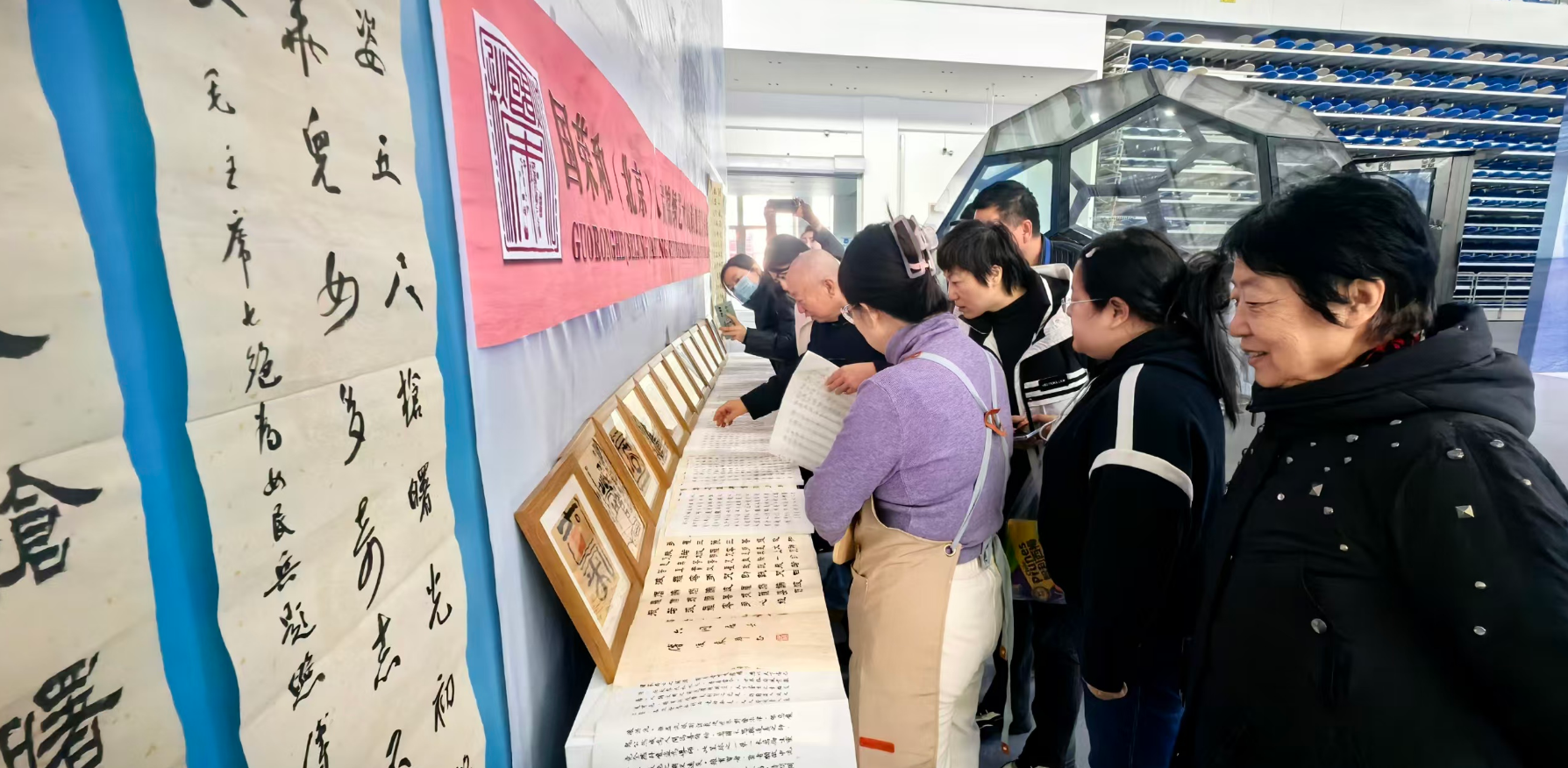 1月8日,“冰链世界、雪舞未来”汉字图腾创意设计展走进2026哈尔滨国际冰雪经济博览会,在B厅主题展区正式展出。展览汇集艺术家孙国辉、付俊来、陈凤英的近百幅原创作品,涵盖中国精神谱系、黑龙江优秀精神、哈尔滨城市精神汉字图腾主题文创,以及真草隶篆各种书体的爱国、励志红色内容的条幅、斗方等。