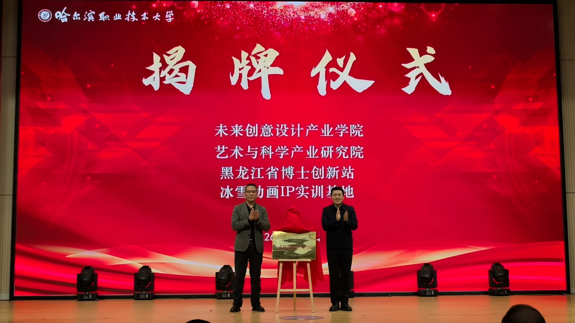 1月8日下午,哈尔滨职业技术大学未来创意设计产业学院、艺术与科学产业研究院、黑龙江省博士创新站、冰雪动画IP实训基地成立揭牌仪式在该校创业学院报告厅举行,在校领导班子成员、共建企业负责人、行业协会代表、东北林业大学和东北农业大学等高校艺术学院领导及专家等共同见证下,四大平台正式投入运行。